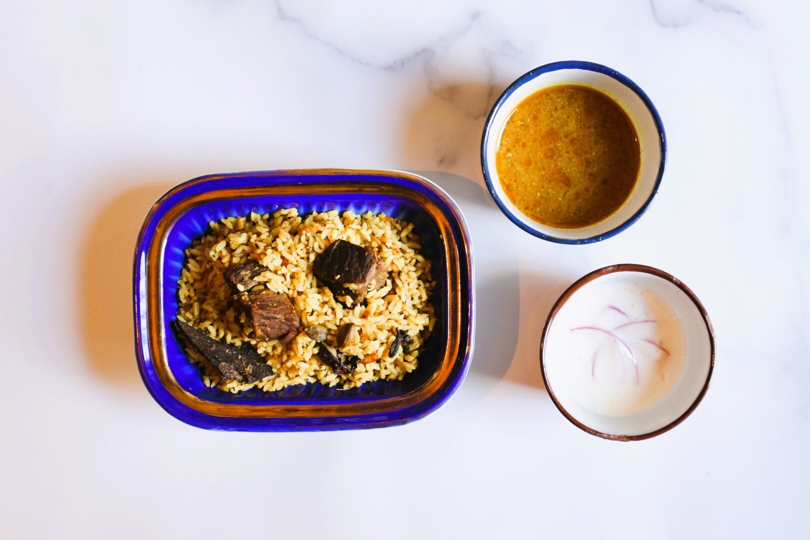 シーラカサンバライス*を使った、炊き込み式のマトンビリヤニ