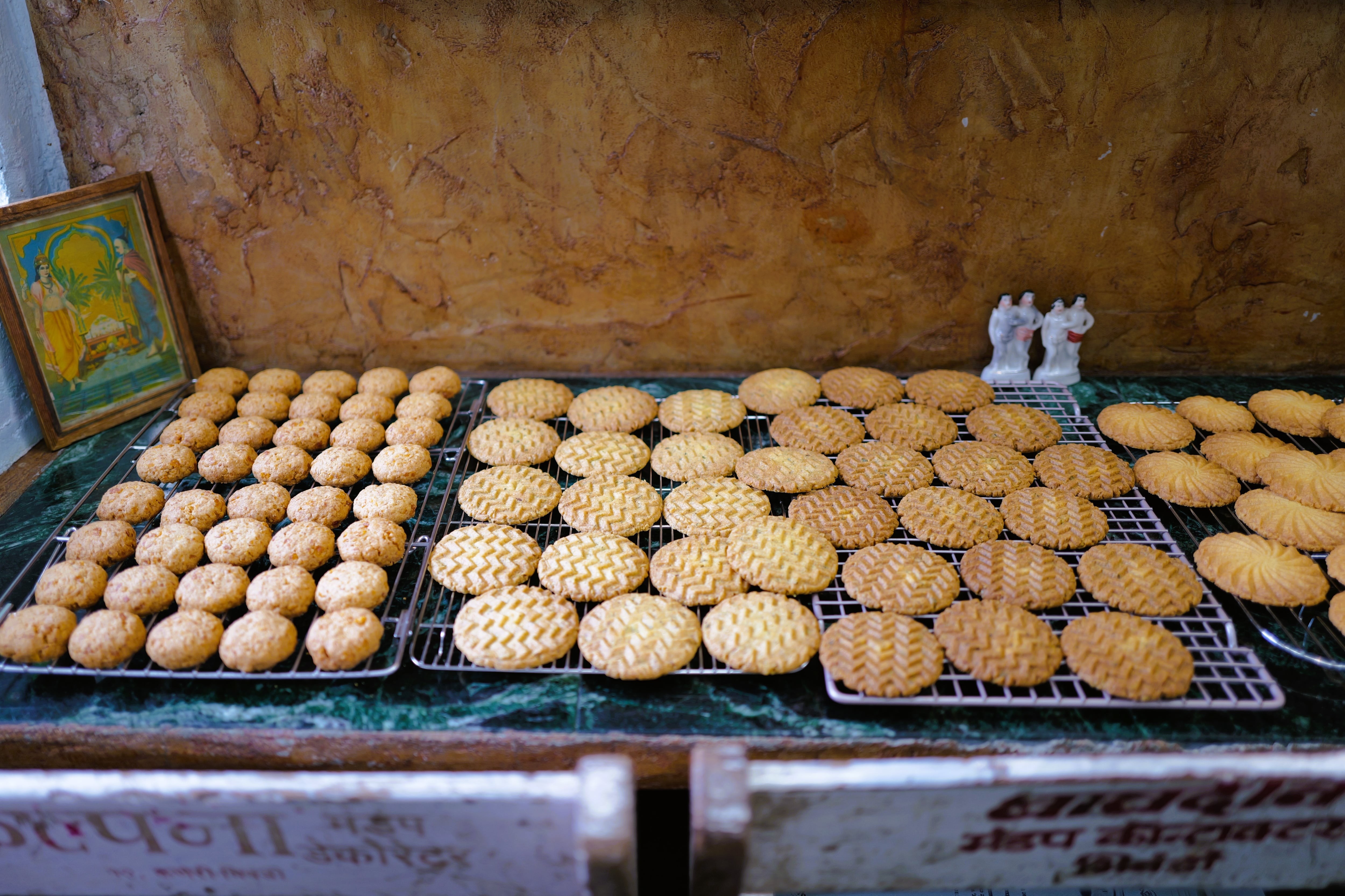 インドのベーカリーやビスケットショップでは、定番のコーンビスケット